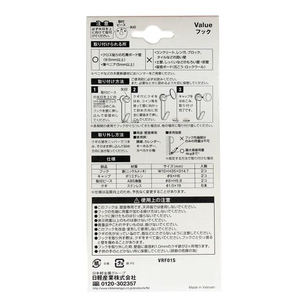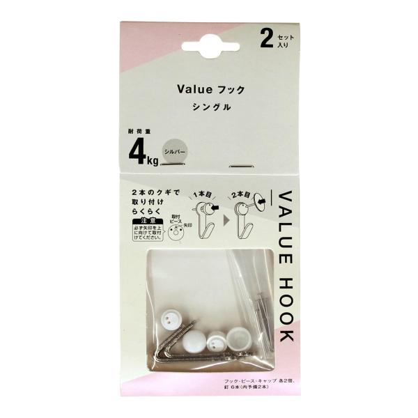 日軽産業 Valueフックシングル 石膏ボード ピン フック シルバー 耐荷重 4kg VRF01S 2セット入