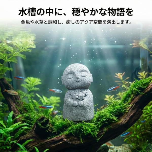 【水槽に応用できる】金魚と地蔵様が織り成す穏やかな世界。水槽に特別な存在感を。