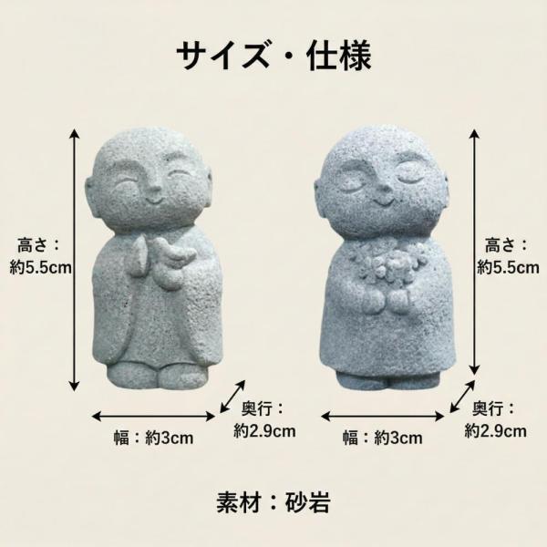 【和の心を感じる】京都の寺院の雰囲気をそのままあなたの手元に。小さな石地蔵で日常に癒しを。【質感が魅力】ひとつひとつ丁寧に作られた地蔵様。砂岩の質感が生む重厚感を手に取って感じてください。【水槽に応用できる】金魚と地蔵様が織り成す穏やかな世界。水槽に特別な存在感を。【どんな場所にも】お庭や玄関、リビングに。どこに置いても映える小さな地蔵様です。