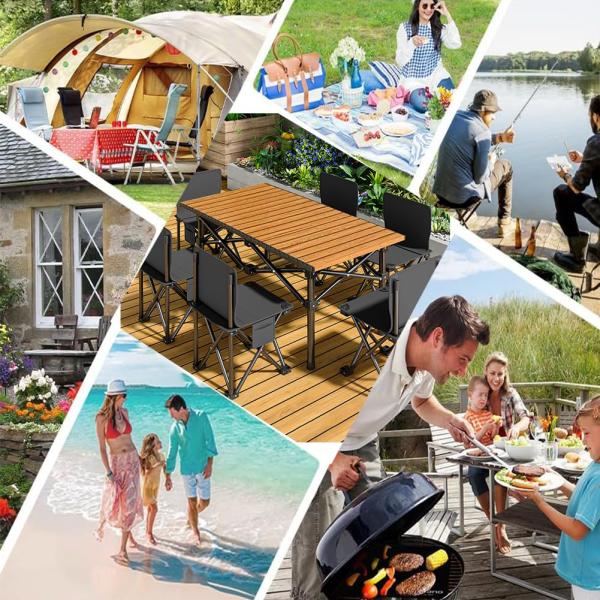 【優れた素材】高品質の材料で作られ、頑丈なフレームは、テーブルをより多くの耐荷重、安定した頑丈な、耐久性、屋外の日光に耐えることができます。テーブルトップは耐摩耗性で、油、油汚れ、汚れを優しく拭き取るだけでよく、お手入れがとても簡単です。野外活動をより楽しく便利にします。(テーブルの表面はダストフィルムで覆われているが、使用状況に応じて取り除くことができる)。