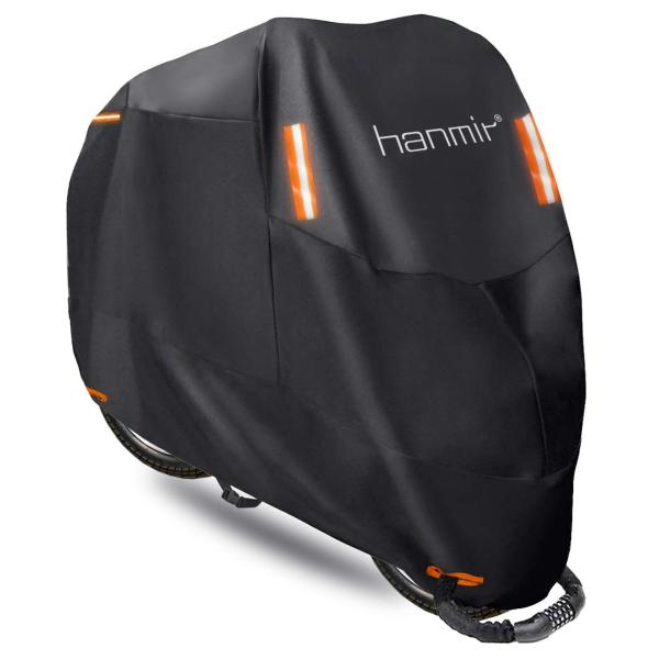 Hanmir バイクカバー 原付カバー 300D厚手 バイクカバー大型 耐熱 防水 撥水 紫外線防止 盗難防止 防風 防埃 防雨 防雪 265cmまで対