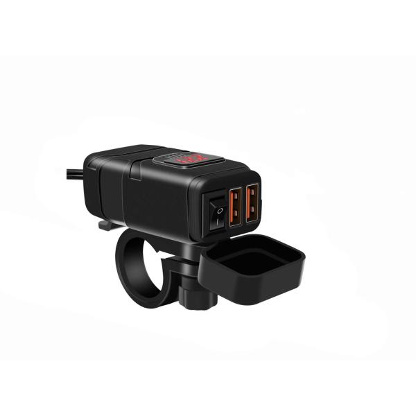 SHEAWA バイク USB電源 USB充電器 QC3.0 USB2ポート 電圧計 防水カバー 電源ON/OFFスイッチ Quick Charge 3