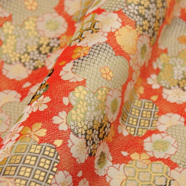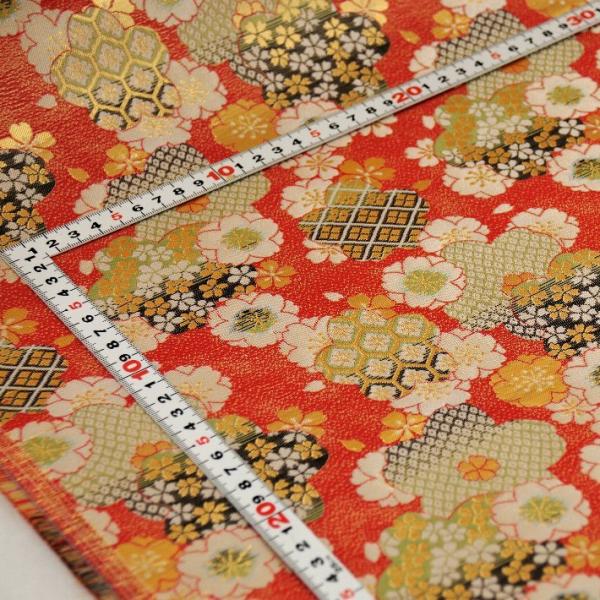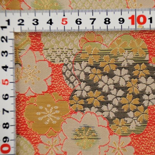金襴 生地 はぎれ 和柄 もりさん A 不織布貼り有り 花寄せ オレンジ色 幅70cm 金襴織物 30cm以上10cm単位 切売り 通販 京都 西陣