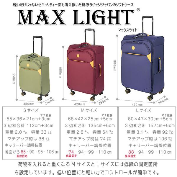 ソフト キャリーバッグ スーツケース キャリーケース 軽量 Mサイズ 中型 拡張機能 マチUp