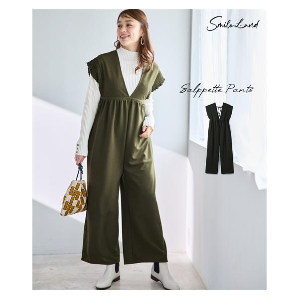 サロペット オールインワン オーバーオール レディース フリル デザイン やわらかサロペット パンツ ゆったり ヒップ 春 夏 秋 | 4L/5L/6L | ニッセン nissen