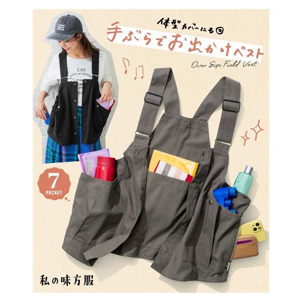 ベスト レディース 多ポケットオーバーサイズ ハンズフリー 私の味方服 春 秋 重ね着 レイヤード | L〜LL | ニッセン nissen