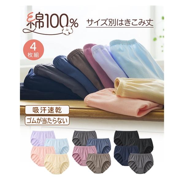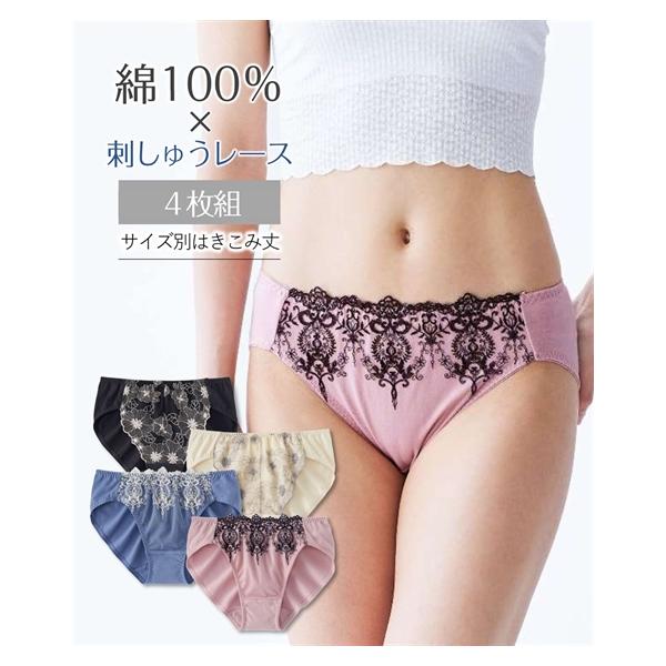 ショーツ レディース 綿100% 刺しゅう レース 4枚組 サイズ別はきこみ丈 春 夏 秋 冬 女性 インナー パンツ パンティ | M/L | ニッセン nissen