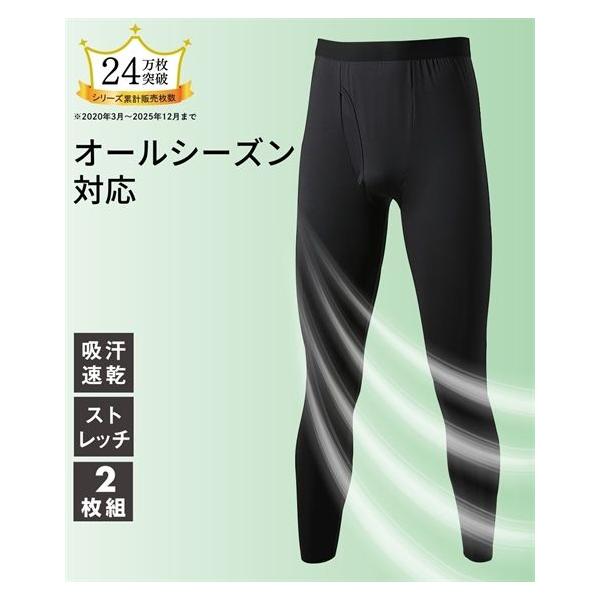 メンズ 吸汗速乾 接触冷感 なめらか ストレッチ 前開き タイツ 2枚組 春 夏 秋 冬 インナー 男性 肌着 下着 | M/L/LL | ニッセン nissen