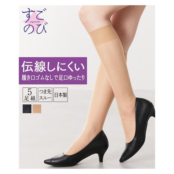 ストッキング 大きいサイズ レディース すごのび 足口ゴムなしゆったり伝線しにくいハイ ソックス 5足組 22.0〜25.0cm ニッセン nissen