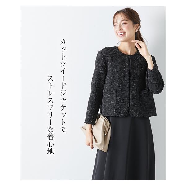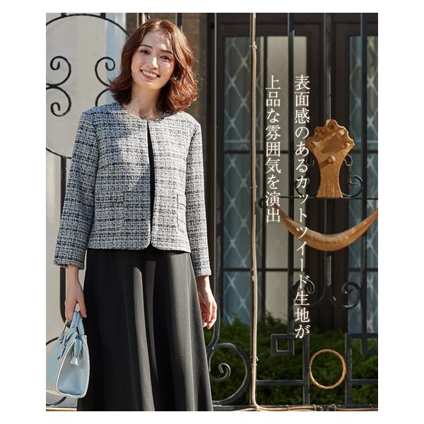 ワンピーススーツ 大きいサイズ レディース 入学式 卒業式 フォーマル カットツイード調 ジャケット +Aライン ワンピース アンサンブル ニッセン nissen
