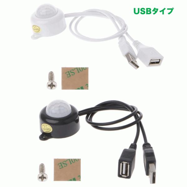 人感センサー付きスイッチケーブル 12v 24v 2Aまで LEDテープライト用USB/DCジャックケーブル ON/OFF LEDテープ用 コネクターledライト ledテープ 自作DIY