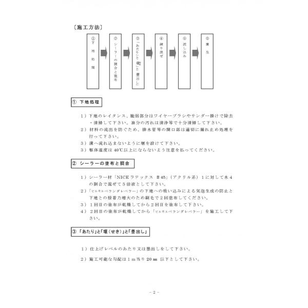 ●速硬タイプですので、施工当日に軽歩行ができます。また仕上げ材までの養生期間も短縮でき、工期の短縮が図れます