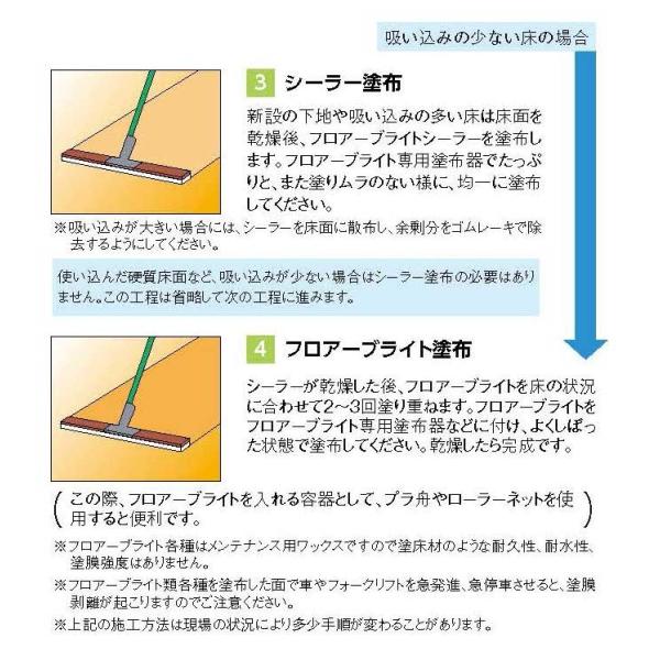 新設の床やすり減りが少ない床に適しています。新設の床や吸込みの多い床の場合はフロアーブライトシーラーと組み合わせてご使用していただくと効果的です。