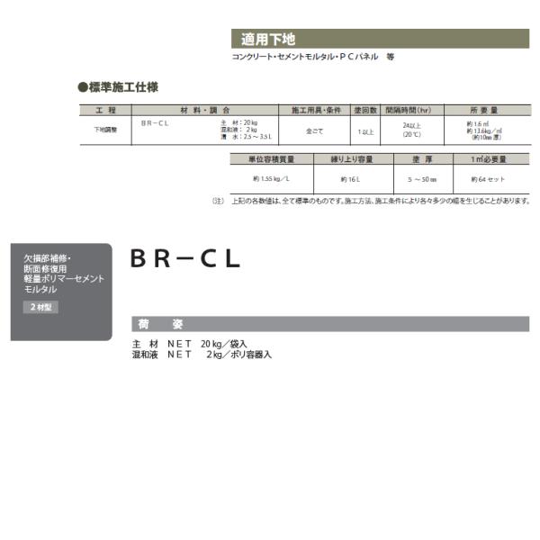 BR-CL 22kg/セット 菊水化学工業(日本スタッコ)欠損部補修・断面修復用軽量ポリマーセメントモルタル