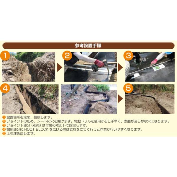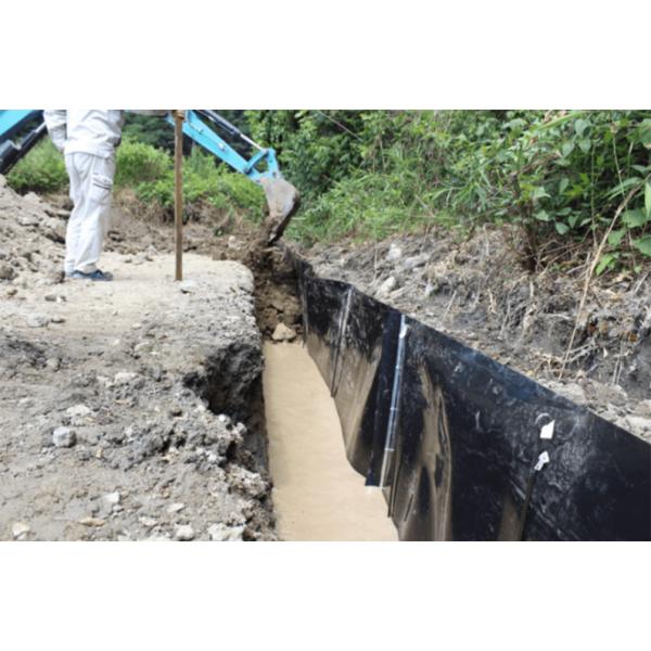 土中にシートを設置することで、竹や樹木の根茎の広がりを防止し、根上による周辺の道路や路盤の破損を防止します。