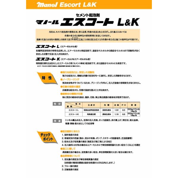 エスコートL&Kは、エアーモルタルやエアーミルクをつくるための起泡剤です。