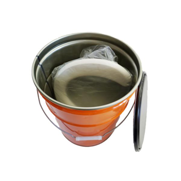 クッション付きの蓋で座れて収納できる缶タイプの便器