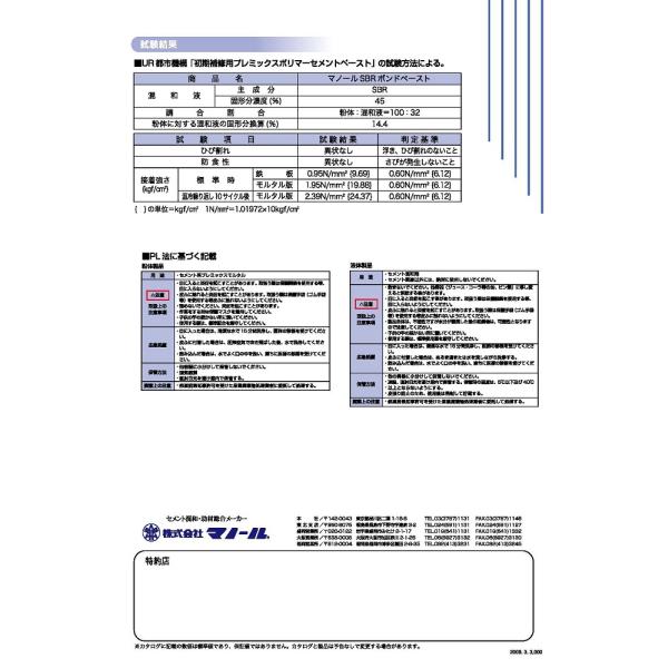 荷 姿:粉体 15kg + 混和液 5kg 20kg/缶