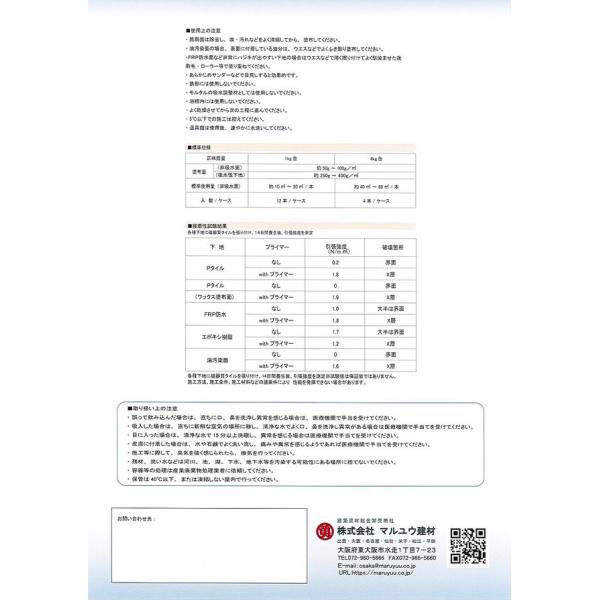 ・内外装のFRP防水面、ウレタン防水面、アスファルト防水面、エポキシ樹脂面、Pタイル、Pタイル用接着剤面油汚染面など、タイル・モルタル施工の為のプライマーです。