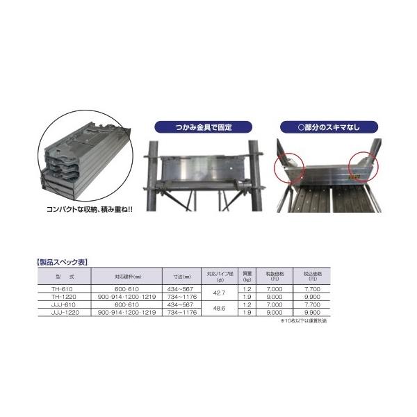アルミ 折りたたみ式 工事用足場台 足場板 アルミ合金製褄側専用伸縮式幅木 コンスガイド TH-610 ※運賃別途 株式会社ナカオ 【個人宅配送不可】