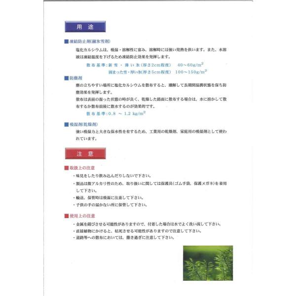 塩化カルシウムは、吸湿・溶解性に富み、溶解時には強い発熱を供います。