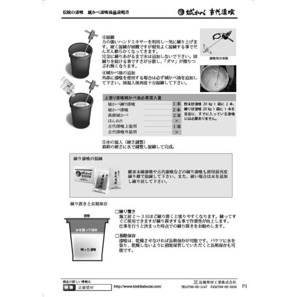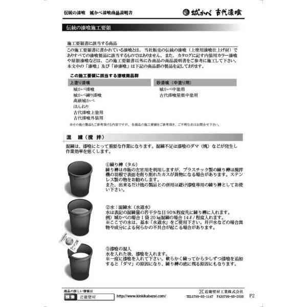 ※練り置きしなくてもご使用いただけますが、漆喰は練り置きすると、原料が水と反応してよくなじみますので、塗りやすくなります。ハンドミキサー等の攪拌機をご利用いただいた方が早くムラ無く練りあがります。混練りが足りない場合、稀に塗り面がはじき、気泡が出来る事があります。 5℃以下では施工をさけてください。