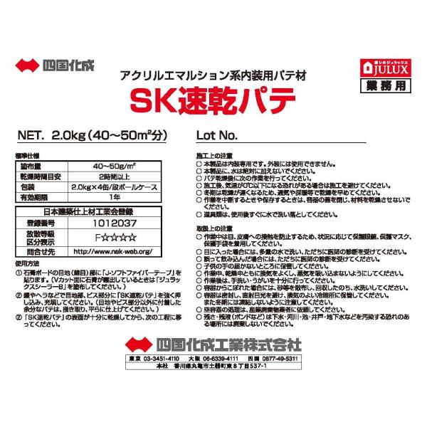 ボード用パテ SK速乾パテ(既調合) 四国化成工業