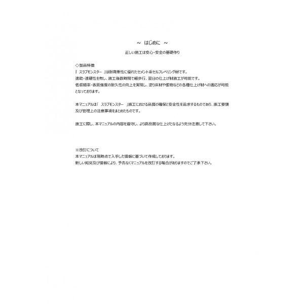 スラブモンスターは耐荷重性に優れたセメント系セルフレベリング材です。