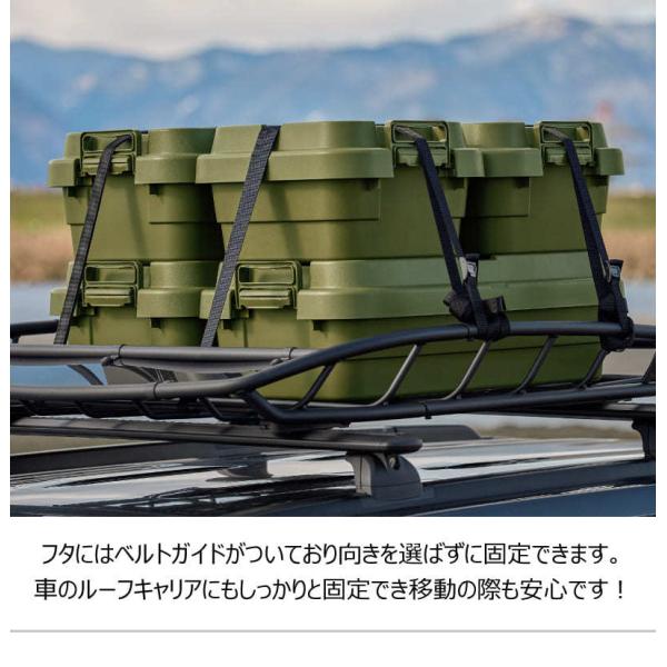 また、フタにベルトガイドの溝を付けたことにより車のルーフキャリーなどに装着し固定できるようになっております。