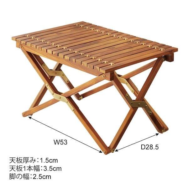 ロールトップテーブル ロールトップ テーブル 机 アウトドアテーブル フォールディングテーブル 折りたたみ アウトドア キャンプ ロータイプ 低い 低め 収納 持ち運び チーク材 本革 天然木 木製