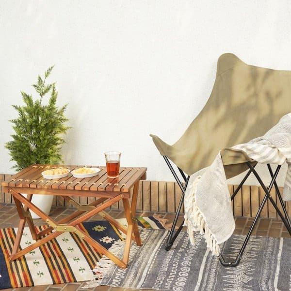 小さく収納・持ち運びができるだけでなく、チーク材と本革の風合いはインテリアとしても活躍します。