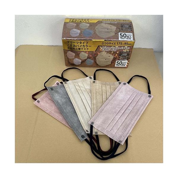 不織布マスク マスク 立体 カラー 立体ブリーツ くすみカラー 大人用ふつうサイズ お肌に自然になじむ 大人かわいい 3層 不織布 バイカラーマスク 50枚箱入