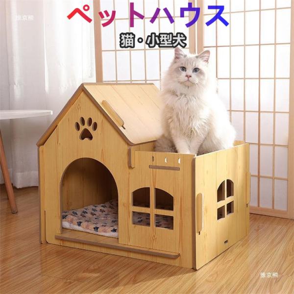 猫ハウス 猫部屋 四季通用 木製 組立簡単 工具不要 アパート 四季通用 子犬 ペットハウス キャット別墅 ドアなしタイプASN