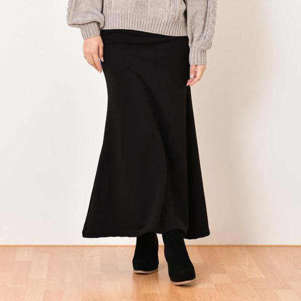 スカート 冬 裏起毛 裏ボア ロング タイト 膝下 ウエストゴム マキシ ロングスカート マーメイド フレア 無地 あったか シンプル 暖かい ブラック