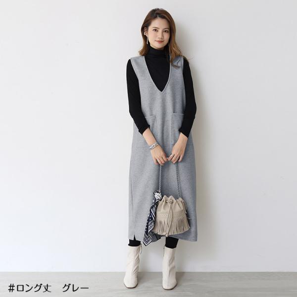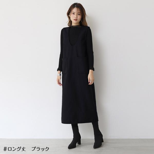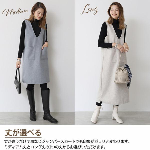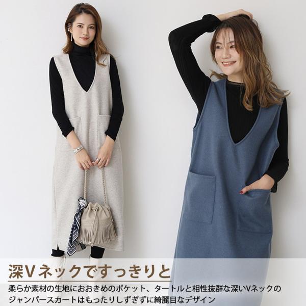 ジャンパースカート ロング 40代 50代 ジャンパースカート50代 大人 秋冬 vネック ウール調 低身長 膝丈 きれいめ ロング 大きいサイズ 深めvネック ワンピース