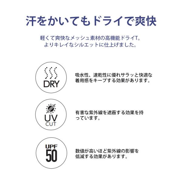 汗をかいても爽快なメッシュ素材のドライTシャツで、スポーツにも最適です。
