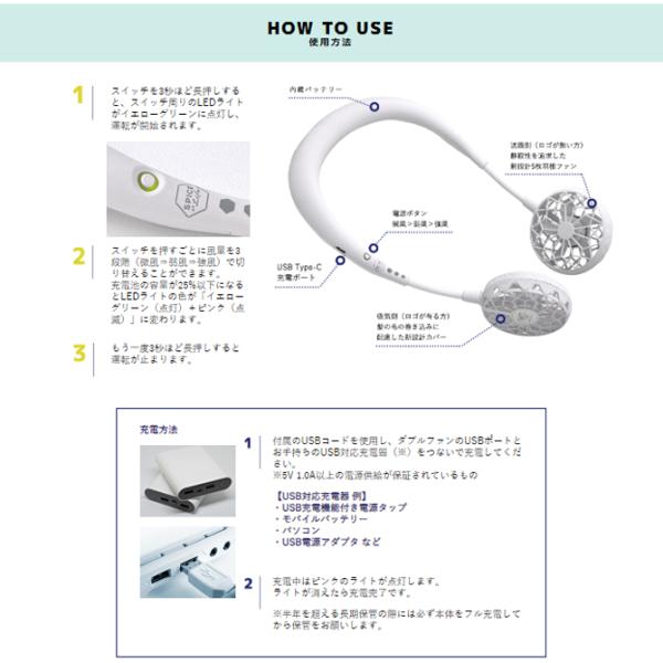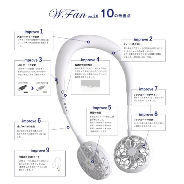 ダブルファン2.0 ポータブル 扇風機 首掛け ハンズフリー 扇風機 携帯用 肩掛け ポータブルファン SPICE OF LIFE wfan
