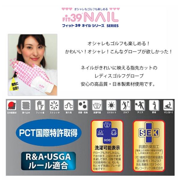 ゴルフ グローブ Fit39 レディース 両手用 ネイルカット ペアグローブ 女性用 左右 ネイルシリーズ MGFN-190N ミックゴルフ フィット39 18-20cm