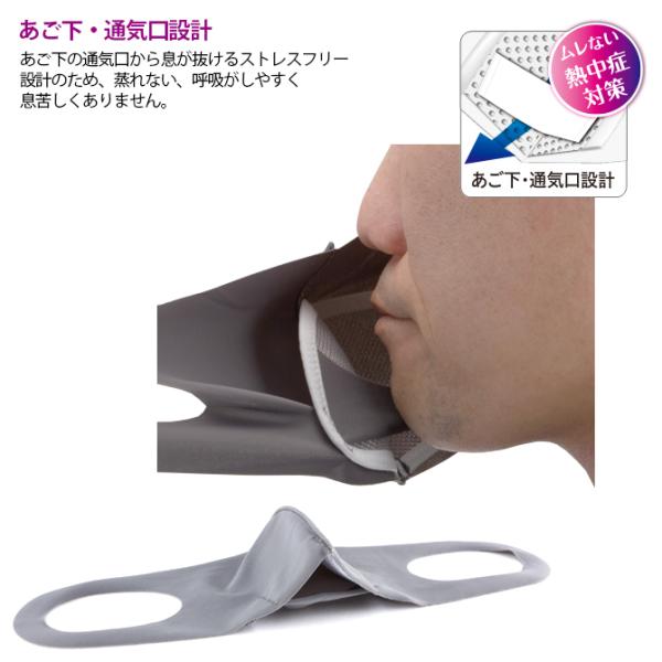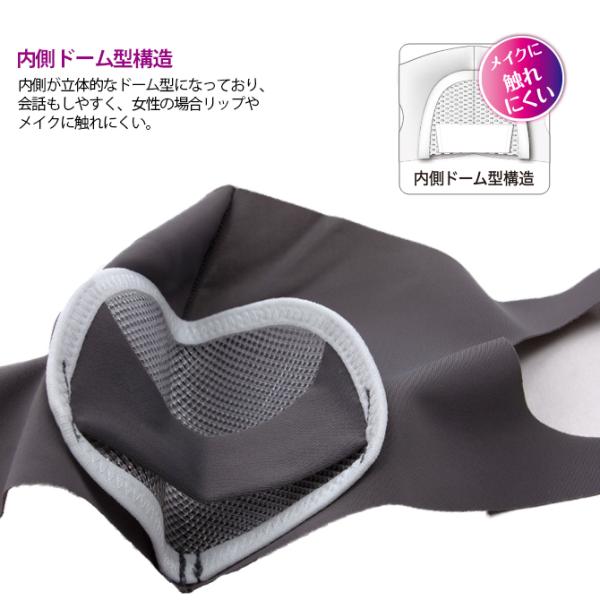 ドーム形状保持3Dメッシュ構造で激しい息呼吸でも、唇に生地が接触しにくい設計。