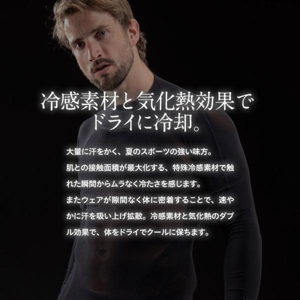 冷感素材と気化熱のダブル効果で、体をドライでクールに保ちます。