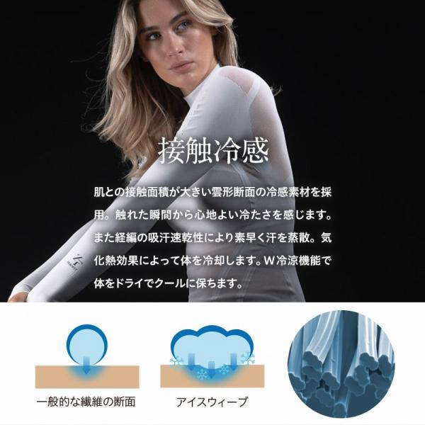 機能性:接触冷感・吸汗速乾・紫外線遮蔽率96.8%・ストレッチ・Polygiene加工済(消臭・抗菌)