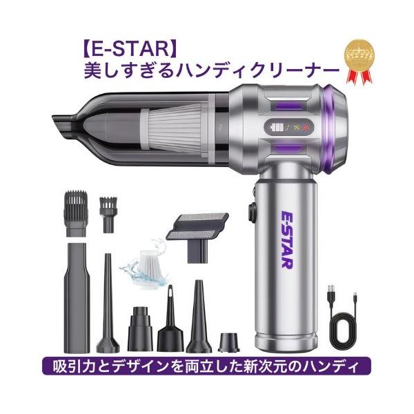 E-STAR ハイパワーハンディクリーナー シルバー 車用掃除機 多機能 ミニ掃除機 吸い込み&吹き飛ばし両用 コードレス 小型掃除機 送料無料 SM-115-SILV