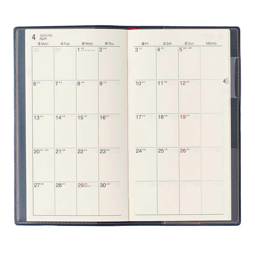 インデックス付き 2026年4月始まり 手帳 スケジュール帳 ダイアリー NOLTY(ノルティ) A5 〈月間カレンダー+週間ブロック〉 月曜始まり