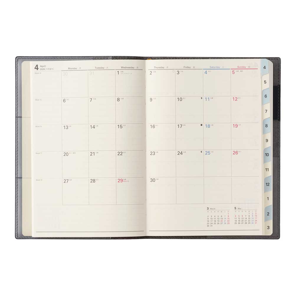インデックス付き 2026年4月始まり 手帳 スケジュール帳 ダイアリー NOLTY(ノルティ) A5 〈月間カレンダー+週間ブロック〉 月曜始まり