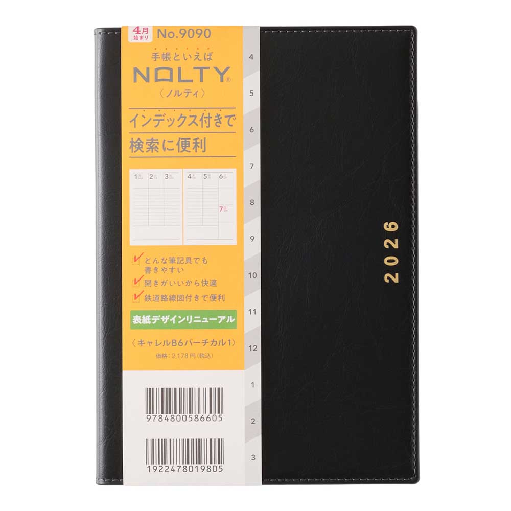 インデックス付き 2026年4月始まり 手帳 スケジュール帳 ダイアリー NOLTY(ノルティ) B6 〈月間カレンダー+週間バーチカル〉 月曜始まり