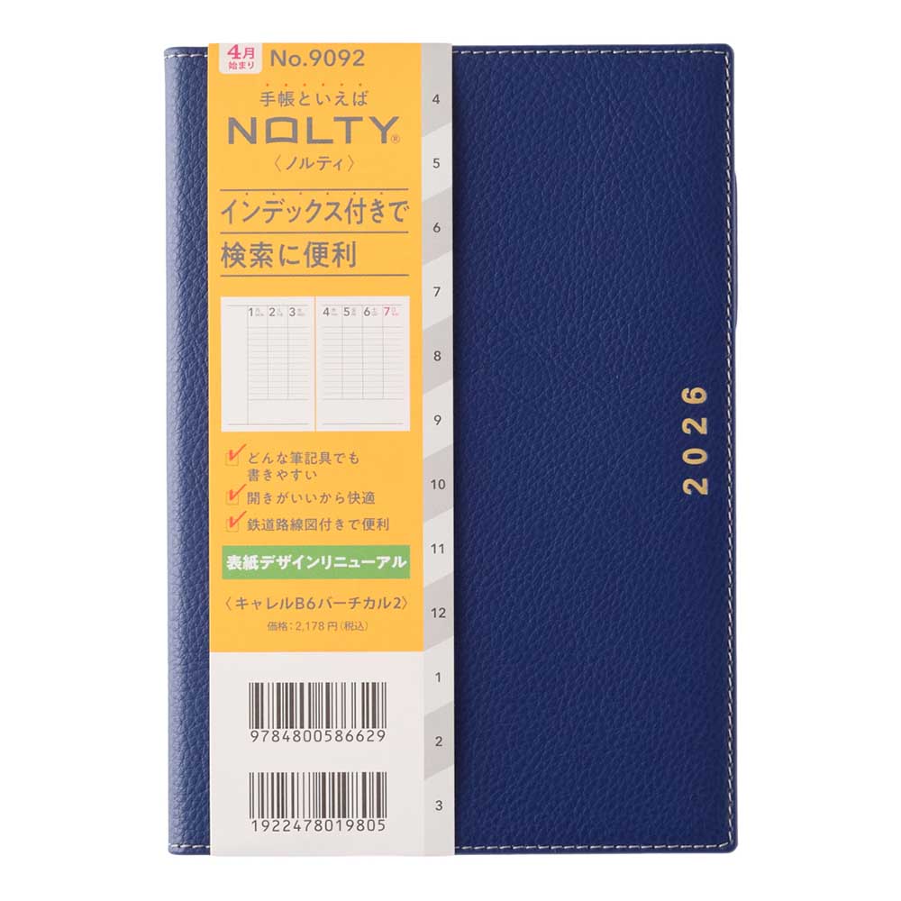 インデックス付き 2026年4月始まり 手帳 スケジュール帳 ダイアリー NOLTY(ノルティ) B6 〈月間カレンダー+週間バーチカル〉 月曜始まり