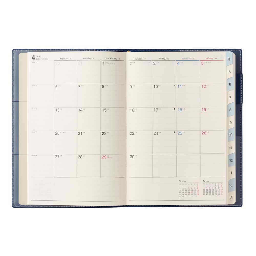 インデックス付き 2026年4月始まり 手帳 スケジュール帳 ダイアリー NOLTY(ノルティ) A5 〈月間カレンダー+週間ブロック〉 月曜始まり