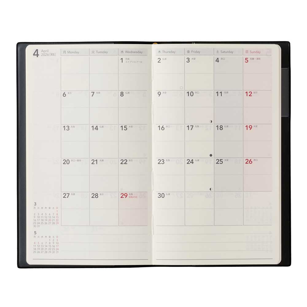 インデックス付き 2026年4月始まり 手帳 スケジュール帳 ダイアリー NOLTY(ノルティ) A5 〈月間カレンダー+週間ブロック〉 月曜始まり