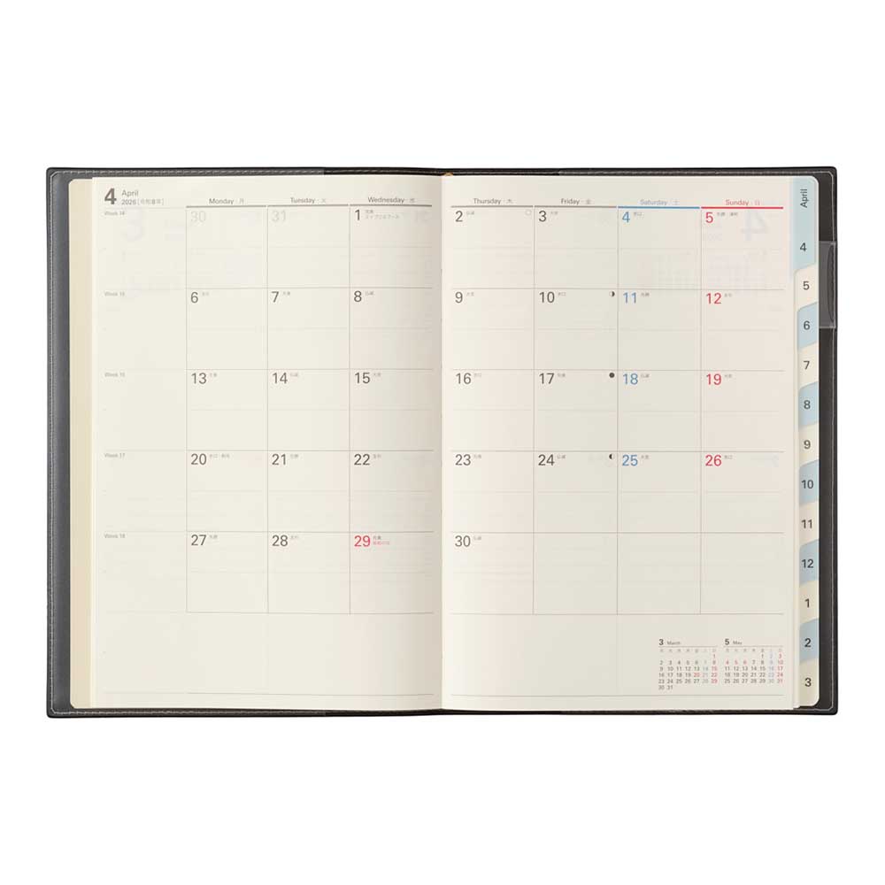 インデックス付き 2026年4月始まり 手帳 スケジュール帳 ダイアリー NOLTY(ノルティ) A5 〈月間カレンダー+週間ブロック〉 月曜始まり