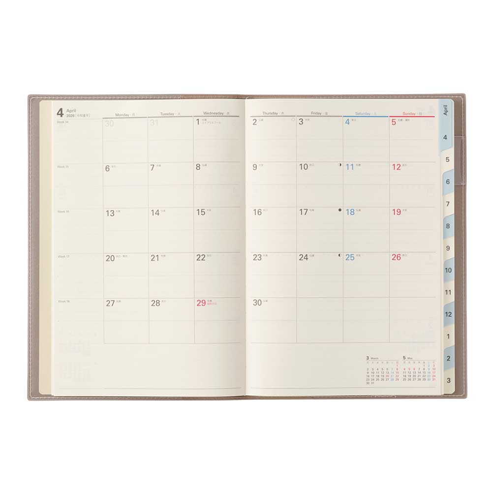 インデックス付き 2026年4月始まり 手帳 スケジュール帳 ダイアリー NOLTY(ノルティ) A5 〈月間カレンダー+週間ブロック〉 月曜始まり